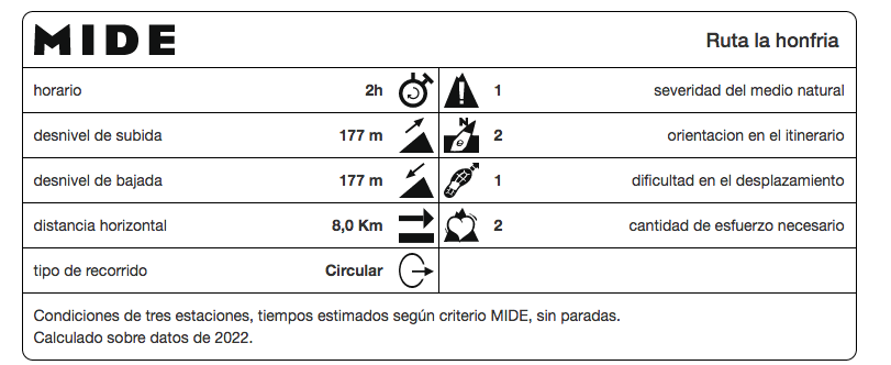 Dificultad de la ruta según sistema MIDE: 2 de 5 (cada uno debe valorar su preparación física para la realización de la actividad)