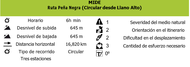 Dificultad de la ruta según sistema MIDE: 3 de 5 (cada uno debe valorar su preparación física para la realización de la actividad)