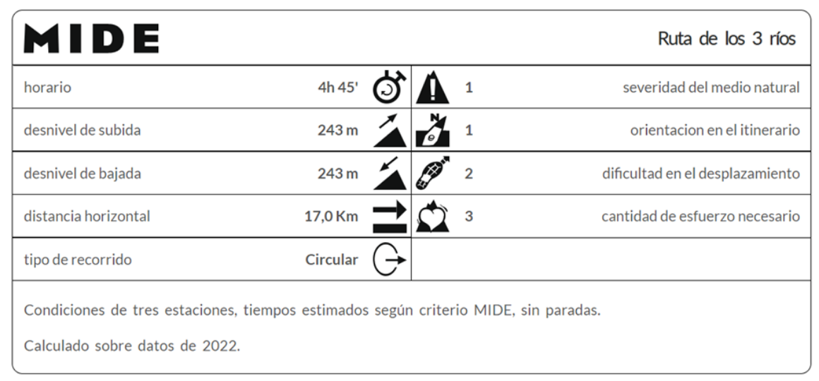 Dificultad de la ruta según sistema MIDE: 3 de 5 (cada uno debe valorar su preparación física para la realización de la actividad)